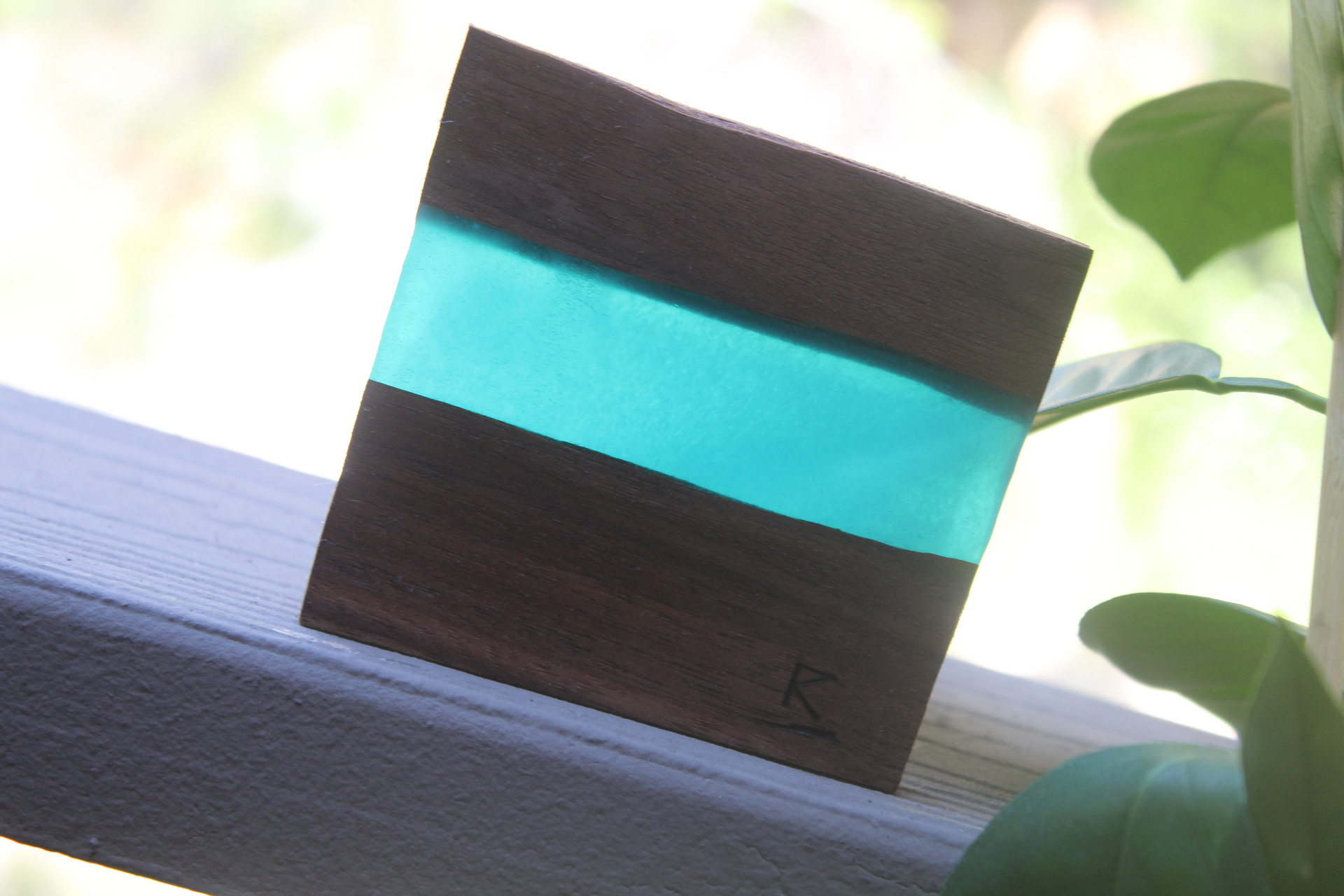 3.5" x 3.5" Black Walnut & Translucent Aqua Blue resin river coasters